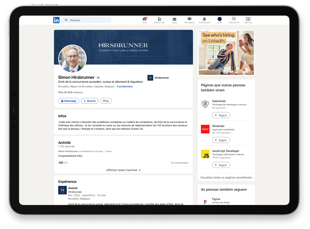 Simon Hirsbrunner est un avocat suisse et allemand inscrit au barreau de Bruxelles en tant qu’avocat de l’UE. Il conseille ses clients sur le droit européen, suisse et allemand de la concurrence, le droit de l’UE sur les aides d’État, le contrôle des concentrations et le droit général de l’UE.